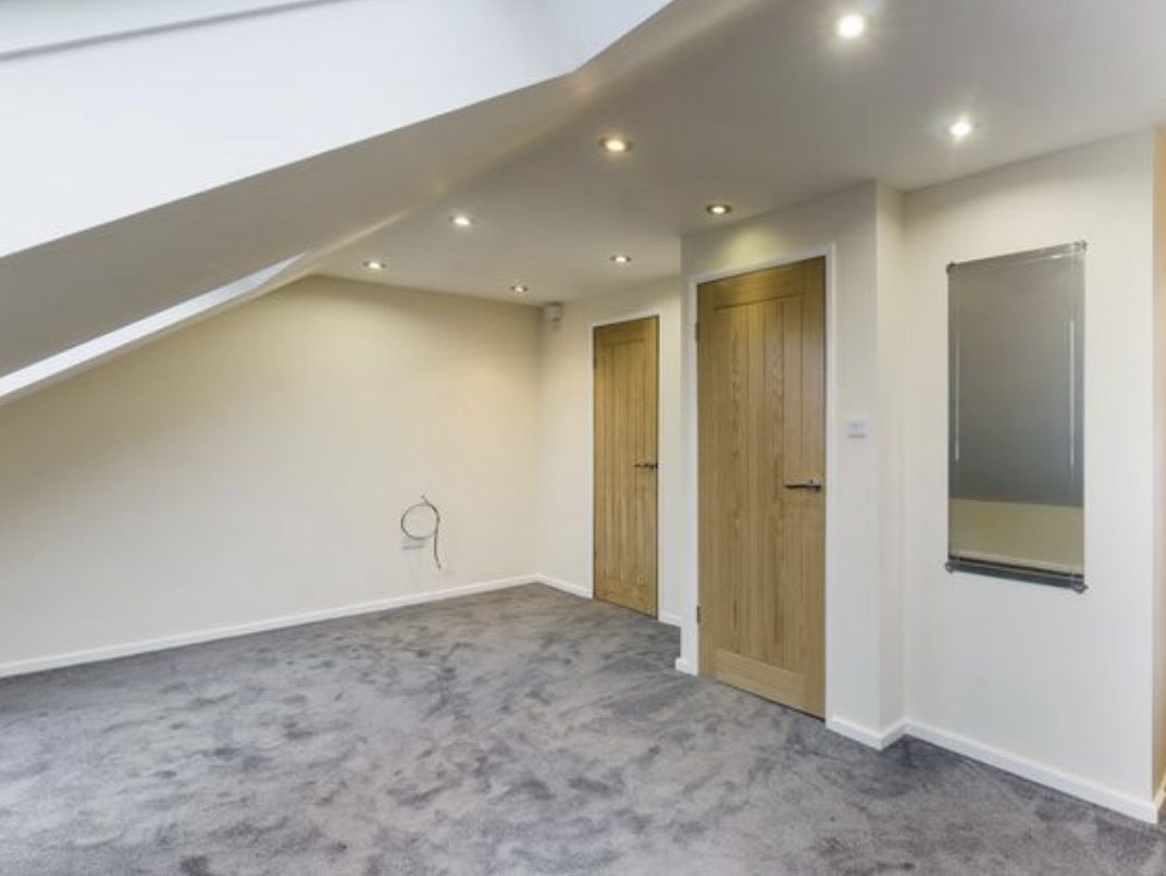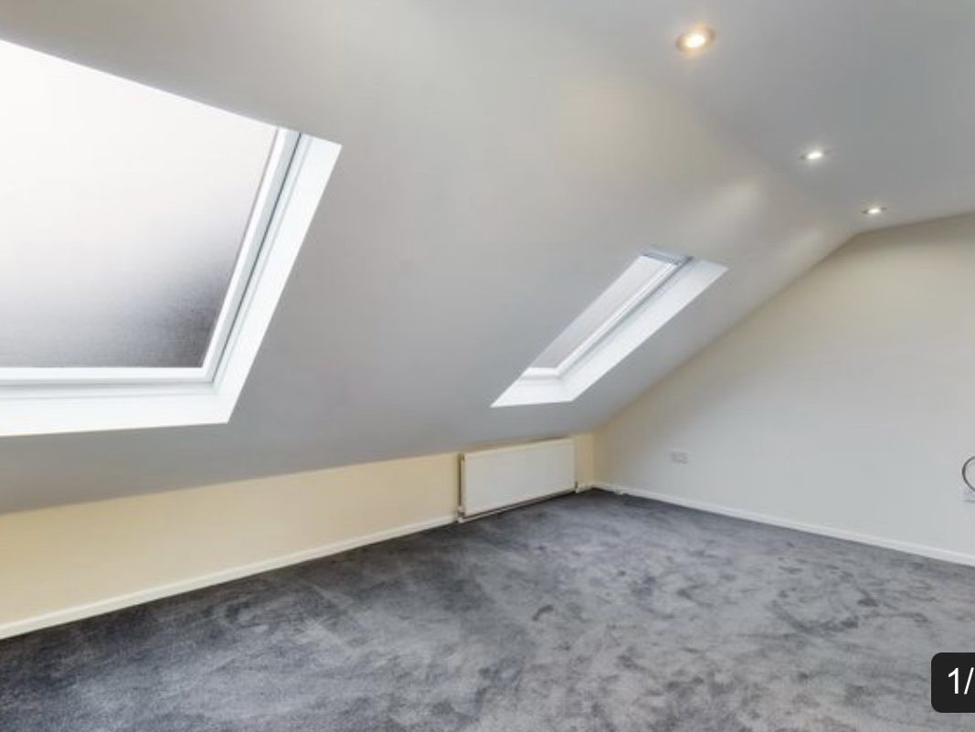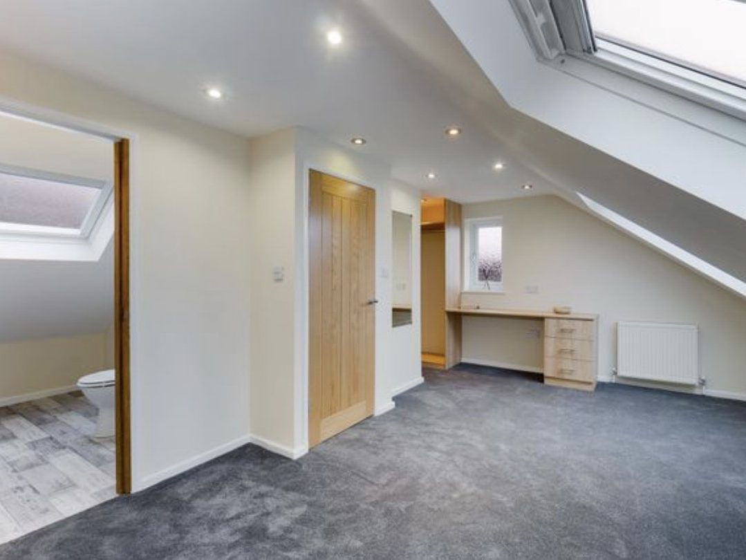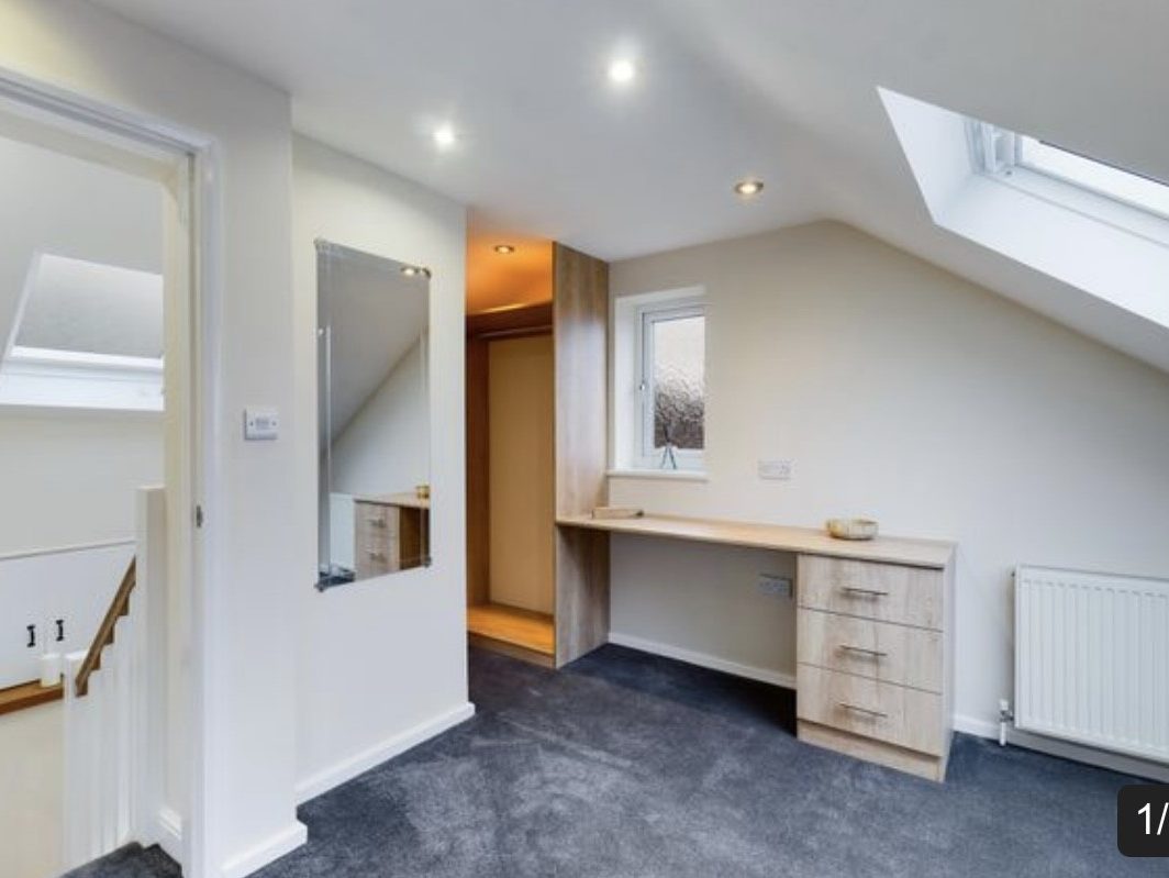 Upstairs, the converted loft serves as our master bedroom, once two separate rooms. It’s hard to imagine it divided again. Two Velux windows offer views of Manchester on sunny days, and a small walk-in closet is tucked in a corner. The ensuite, though functional, lacks the grandeur one would expect in a master suite.