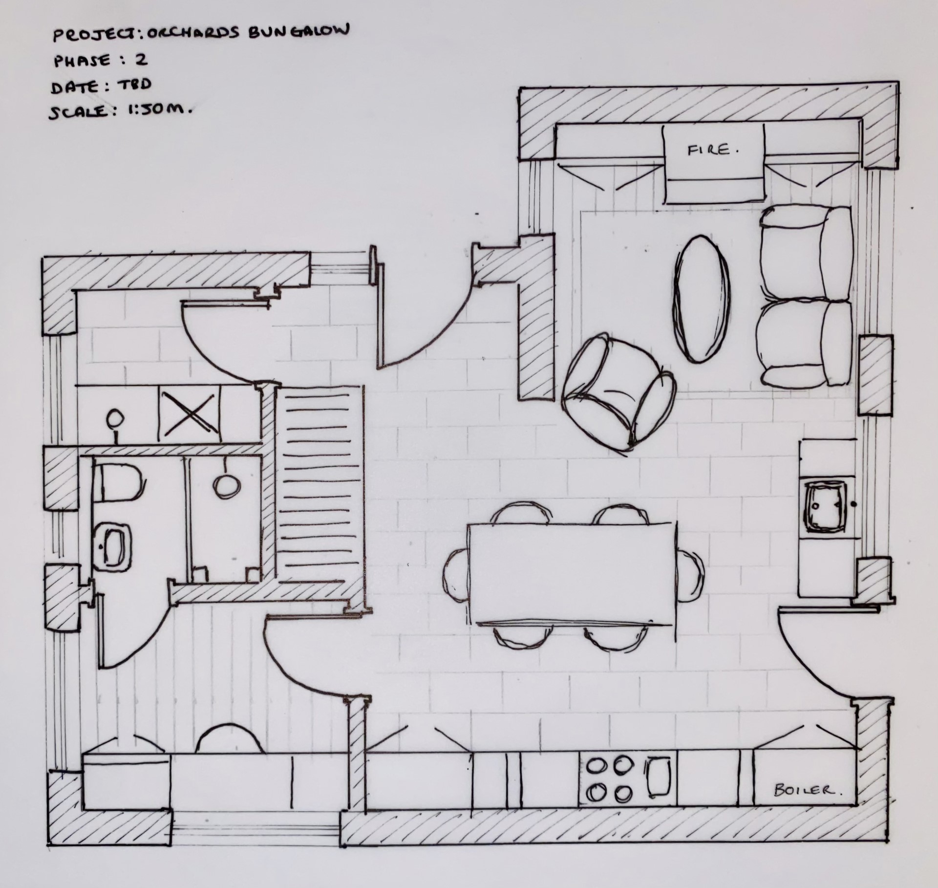 We asked a local architect (Creative Architects Ltd) to draw up plans for an extension, which we submitted for planning in March 2023. The goal is to integrate “The Den” into the main house.