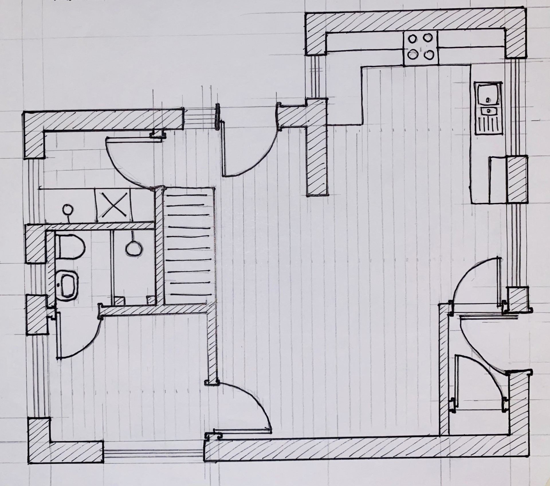 We’re planning to shift the main entrance of the house. The new doorway will be positioned between “The Den” and the main house. This change is not just about aesthetics; it’s about creating a more practical and accessible entrance. It will be closer to the driveway and gate, making it easier for us and our guests to come and go. And what was The Den will become the new living room, with a workspace for Lewis and a new downstairs loo.